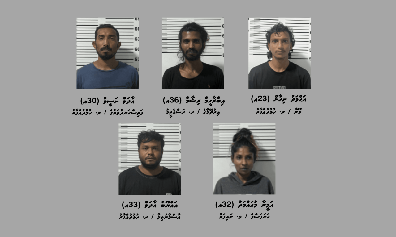 ފުލުހުން ބުނީ މި 9 މީހުން ވެސް ހައްޔަރުކޮށްފައިވަނީ އެ ގޭގައި މަސްތުވާތަކެތި ބޭނުންކުރަން ތިއްބާ ކަމަށެވެ. ފުލުހުން ބުނީ އެ މީހުން ހައްޔަރުކޮށްފައިވަނީ ކައުންޓާ ނާކޮޓިކްސް އިންޓެލިޖެންސަށް ލިބުނު މައުލޫމާތަކާ ގުޅިގެން މި ނޮވެމްބަރު މަހުގެ 1 ވަނަ ދުވަހު ހިންގި އޮޕަރޭޝަނެއްގައި ކަމަށެވެ.