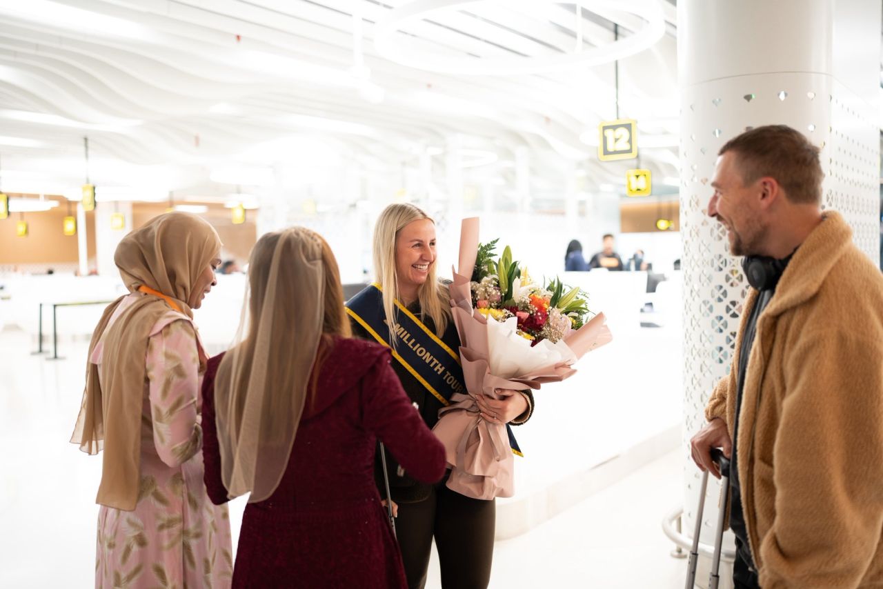 ރާއްޖެއަށް މިއަހަރު ޒިޔާރަތްކުރި ދެމިލިއަން ވަނަ ފަތުރުވެރިޔާއަށް މަރުހަބާކިޔުމަށް ވީއައިއޭގައި ބޭއްވި ހާއްސަ ރަސްމިއްޔާތުގައި ވިޒިޓް މޯލްޑިވްސް ކޯޕަރޭޝަން (ވީއެމްސީ)ގެ އިތުރުން ފަތުރުވެރިކަމާއި ތިމާވަށްޓާބެހޭ ވުޒާރާ، މޯލްޑިވްސް އެއާޕޯޓްސް ކޮމްޕެނީ ލިމިޓެޑް (އެމްއޭސީއެލް)އާއި، އިމިގްރޭޝަން، ކަސްޓަމްސްގެ އިތުރުން ސަރުކާރުގެ އެހެން މުވައްސަސާތަކާއި އަމިއްލަ ޖަމިއްޔާތަކާއި މީޑިއާތަކުން ބައިވެރިވި އެވެ.