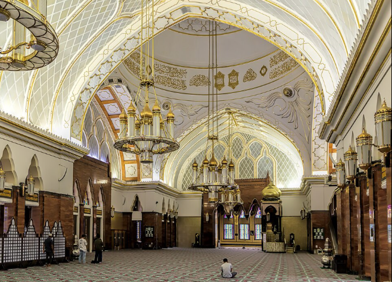 މި މިސްކިތް ބިނާކުރުމަށް ހަތަރު އަހަރު ހޭދަވެގެން ދިޔައިރު މިސްކިތުގެ މަސައްކަތް ނިމި ހުޅުވުނީ 1958 ވަނަ އަހަރުގަައެވެ. މި މިސްކިތް ބިނާކުރުމަށް ފަސް މިލިއަން އެމެރިކާ ޑޮލަރު ހޭދިވިއިރު މިސްކިތް ބިނާކުރުމުގައި ބޭނުންކުރީ އެންމެ ރީތި ތަކެތި ކަމަށްވާ ޝަންހާއީ ގްރޭނައިޓް އާއި އިޓަލީގެ މާބަލް އެވެ. އިނގިރޭސިވިލާތުގެ ސްޓޭންޑް ގްލާސް އަދި ކްރިސްޓަލް ޗެންޑަލިއާސް ގެ ރީތިކަން މި މިސްކިތުން ފެނިގެންދާއިރު ސައުދީ އަރަބިއްޔާއިން ލިބޭ ރީތި ކާޕެޓުން މިސްކިތައް އިތުރު ފުރިހަމަކަމެއް ގެނެސްދީފައިވެއެވެ.