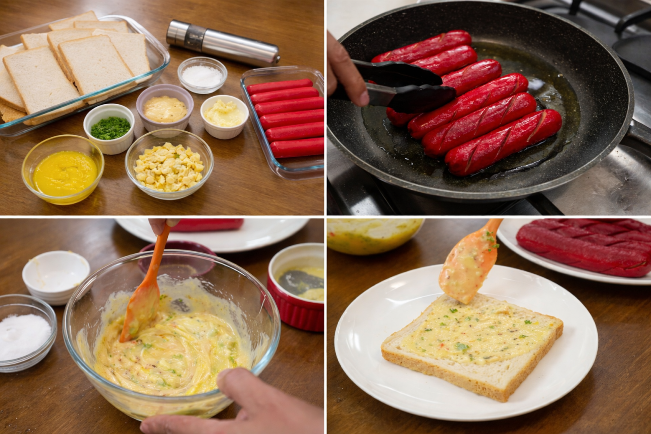 އެންމެ ފުރަތަމަ ތައްޓަކަށް ބިހުގެ ގަބުޅި ބައި، ބަޓަރު، މަޔޮނައިޒް، ލޮނުމެދު، ލޮނު އަދި ޕާސްލޭ އެޅުމަށްފަހު ރަނގަޅަށް އެއްކޮށްލުމަށްފަހު އެއްކައިރީގައި ބަހައްޓާލާށެވެ.
