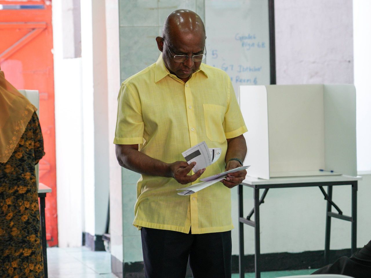 މިއަދުގެ އިންތިހާބުގައި ރައީސް ޑރ. މުހައްމަދު މުއިއްޒު އާއި މެޑަމް ސާޖިދާގެ އިތުރުން ކުރީގެ ރައީސް އިބްރާހީމް މުހައްމަަދު ސޯލިހް ވެސް ވަނީ ވޯޓު ލައްވާފައެވެ.