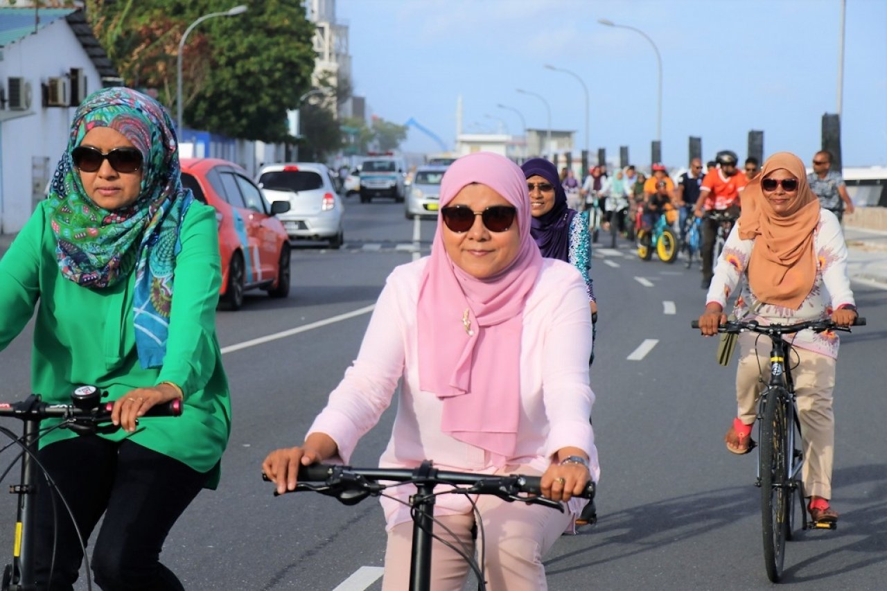 ޖޫން 12، 2019 - ޗާފު ވަޔަށް ބައިކަލުގެ ނަމުގައި އެންވަޔަރަމަންޓް މިނިސްޓްރީ އާއި ބައިކް މޯލްޑިވްސް އިންތިޒާމުކޮށްގެން ބައިކަލު ދުއްވުމުގެ އިވެންޓެއް މިއަދު ބާއްވާފައިވަނީ ހުޅުމާލެ ފެރީ ގިމަތަ ކައިރިންނެވެ. މި ބައިސްކަލަު ދުއްވުމުގައި އެތައް އާންމުންނެއް ބައިވެރިވެފައިވާ އިރު ގިނަ އަދަދެއްގެ ކުޑަކުދިންވެސް ބައިވެރިވެފައިވާކަން ފާހަގަކޮށްލެވެއެވެ. ހުޅުމާލެ ފެރީ ގިމަތަ ކައިރިން ފެށި މި ބައިކަލް ބުރު ނިންމާލާފައިވަނީ ސޯޝަލް ސެންޓަރަށެވެ. އެއަށް ފަހު ސޯޝަލް ސެންޓަރުގައި އެންވަޔަރަމަންޓް މިނިސްޓްރީގެ ހާއްސަ ރަސްމިއްޔާތެއް ކުރިއށް ގެންގޮސްފައިވެއެވެ. މި ރަސްމިއްޔާތުގައި އެނަވަޔަރަމަންޓް މިނިސްޓަރު ޑރ. ހުސައިން ރަޝީދާއި ޓްރާންސްޕޯޓް މިނިސްޓަރު އައިޝަތު ނަހުލާ ބައިވެރިވެ ވަޑައިގެންފައި ވެއެވެ.